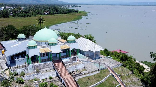Gorontalo - Masjid Quba yang bangun di atas bukit dengan panorama Danau Limboto di Dembe, Kota Gorontalo, Gorontalo. Yuk lihat keindahannya.