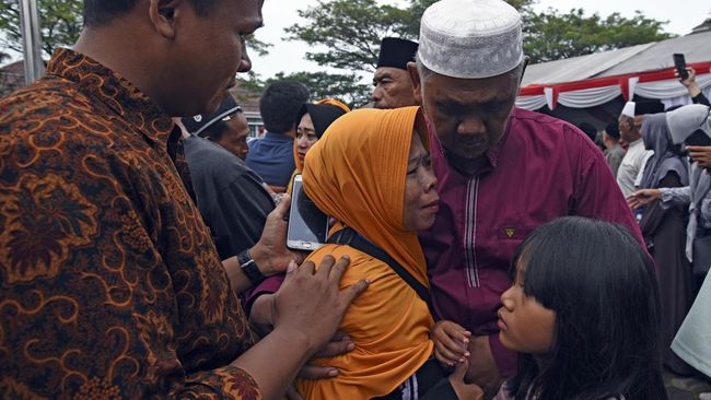 Warga anggota jemaah haji asal Banten berpamitan kepada keluarganya saat akan berangkat dari Serang, Banten, Selasa (14/5/2024).