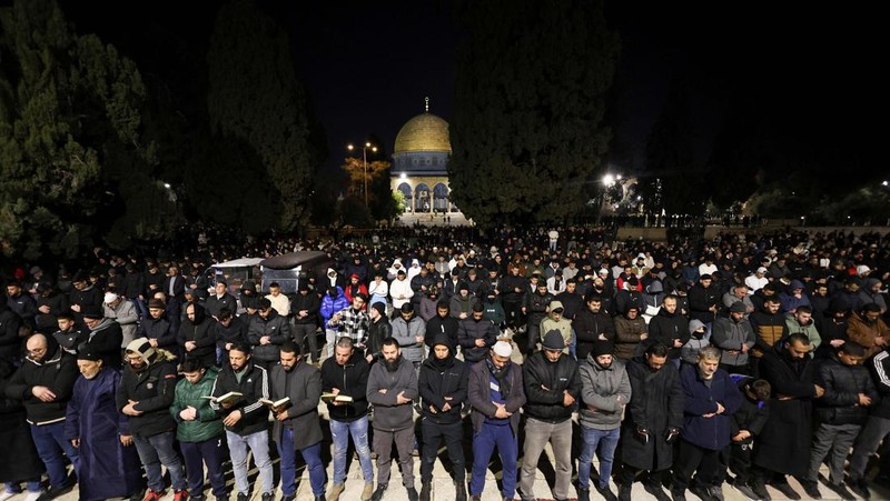 Suasana Salat Tarawih di Masjid Al-aqsa BAGIKAN URL telah disalin Umat muslim Palestina melaksanakan salat tarawih pertama di Masjid Al-aqsa, Jumat (28/2) waktu setempat. Salat ini diikuti oleh kaum pria dan wanita. Puasa Ramadan tahun ini berlangsung saat gencatan senjata di Gaza namun Israel terus menyerang Tepi Barat. Umat muslim bersujud ke arah Masjidil Haram.