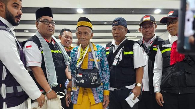 Jemaah haji tertua asal Indonesia tiba dengan sehat di Bandara Amir Muhammad bin Abdul Aziz (AMAA) Madinah pada Jumat (26/5/2023). Kakek yang kerap disapa mbah Harun itu berusia 119 tahun.