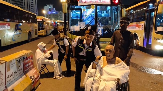 Bayu pun menggendong Mbah Murni ke Kantor Sektor Khusus Masjidil Haram yang berjarak sekitar 150-an meter dari tempat semula dia tersandera kursi roda. Di kantor Seksus Masjidil Haram, Mbah Murni dicek kesehatannya oleh petugas haji 2023.
