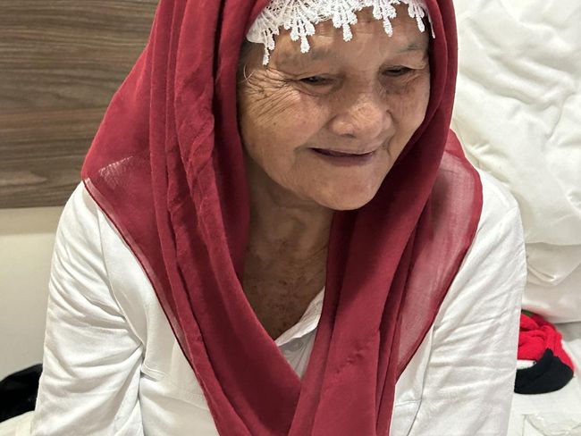 "Kalau dia (menunjuk nenek Bonih) sakit, saya ngurus ompolnya. Soalnya dia nggak ada siapa-siapa," ungkap nenek Ombah yang bertutur dalam bahasa Sunda saat dikunjungi di Hotel Arkan Bakkah 1, Selasa (13/6/2023).