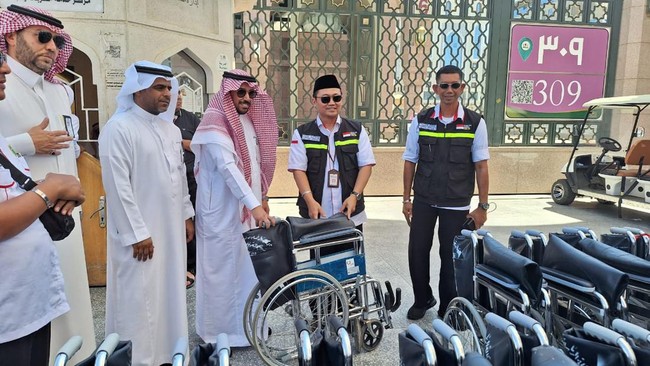 Dikutip dari laman Kemenag, Kamis (15/6/2023), Asisten Wakil Sekretaris untuk Layanan Kemanusiaan, Sukarelawan dan Kemanusiaan Masjid Nabawi Naif Mus ih A Mutairi memberikan secara simbolis bantuan kursi roda itu. Bantuan pun diterima oleh Kepala Daerah Kerja (Kadaker) Madinah Zaenal Muttaqin.