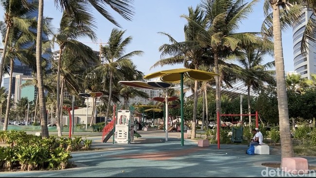 Kawasan ini tengah menggeliat. Di sisi pantainya berdiri megah hotel-hotel berbintang lima. Terdapat juga kawasan pedestrian, trek joging hingga playground. Tak luput, jajaran gerai restoran dunia dan kafe estetik.