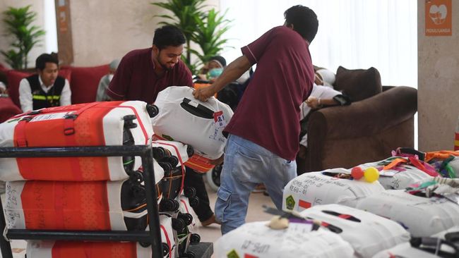 Petugas Penyelenggara Ibadah Haji (PPIH) siap memberangkatkan 6.325 jemaah dari Tanah Suci ke ke Tanah Air hari ini, Kamis (13/7/2023). Mereka tergabung dalam 17 kelompok terbang (kloter) yang akan berangkat dari Bandara Internasional King Abdul Aziz.