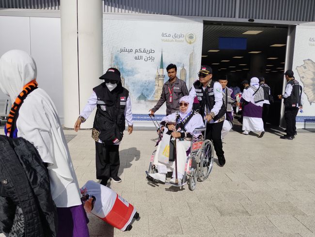 Jemaah haji Indonesia kloter pertama tiba di Bandara Amir Muhammad bin Abdul Aziz, Madinah, Arab Saudi, pukul 07.55 waktu setempat. Kedatangan kloter 1 asal Embarkasi Jakarta - Pondok Gede (JKG) ini mengawali kedatangan pertama haji Indonesia.