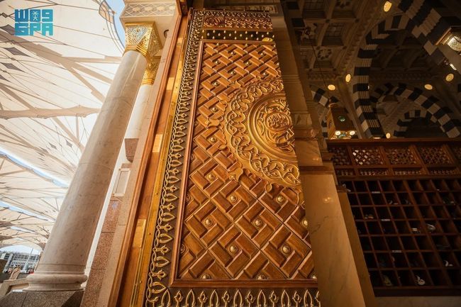 Mengutip laporan Saudi Press Agency (Kamis, 19 Juni 2025), seluruh pintu tersebut dibuat dari lebih dari 1.600 meter kubik kayu jati premium. Masing-masing terdiri atas lebih dari 1.500 keping tembaga berlapis emas, dengan ukiran kaligrafi indah bertuliskan "Muhammad, Utusan Allah SWT" dalam desain melingkar.