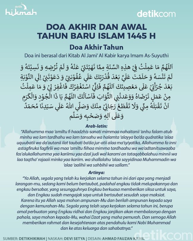Jakarta - Doa akhir dan awal tahun bisa dibaca untuk menyambut Tahun Baru Islam 1 Muharram 1445 H. Momen pergantian tahun dalam kalender Hijriyah ini diperkirakan bertepatan dengan tanggal 18 Juli 2023.