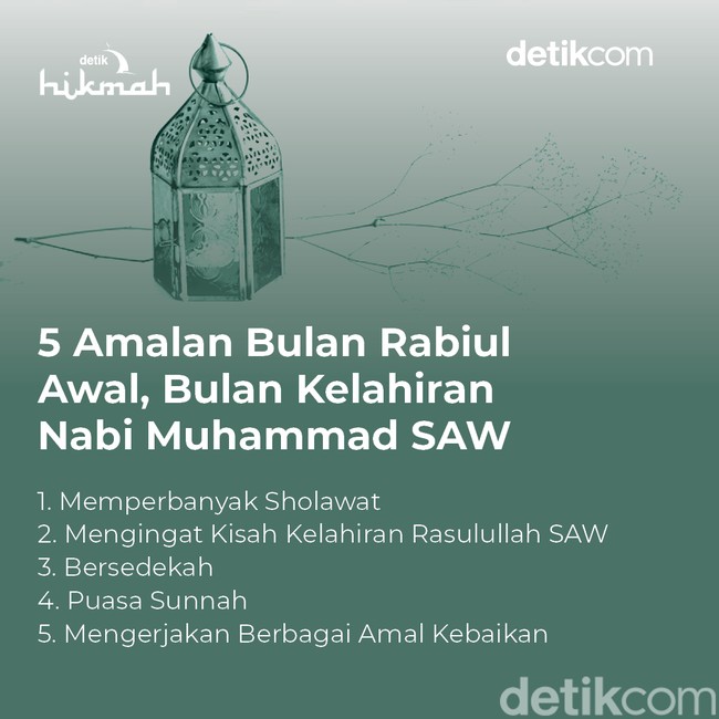 Jakarta - Rabiul Awal adalah bulan ketiga dalam kalender Hijriah. Rabiul Awal juga menjadi bulan istimewa karena merupakan bulan kelahiran Nabi Muhammad SAW. Ada beberapa amalan yang mendatangkan keutamaan ketika dikerjakan di bulan Rabiul Awal.