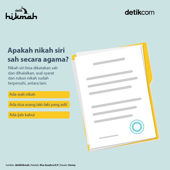 Jakarta - Nikah siri mendapatkan konotasi negatif dari masyarakat karena identik dengan nikah secara diam-diam dan tertutup. Syarat nikah siri dan tata caranya terbilang cukup sederhana jika dibandingkan dengan pernikahan resmi.