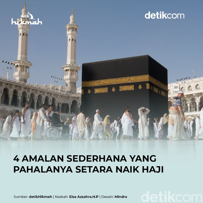 Jakarta - Bagi muslim yang sulit untuk memenuhi kewajiban ibadah haji, terdapat beberapa amalan yang bisa dilakukan untuk mendapatkan pahala yang setara. Berikut ini adalah beberapa amalan yang pahalanya sama seperti ibadah haji di Tanah Suci.