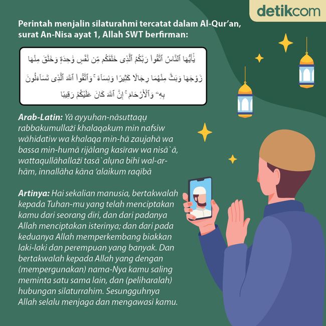 Jakarta - Hukum memutus tali silaturahmi dijelaskan dalam berbagai dalil Al-Qur'an dan hadits Rasulullah SAW. Bagi umat muslim yang memutus silaturahmi akan mendapatkan azab Allah, tidak diterima amalnya dan bahkan ditempatkan di neraka. Nauzubillah!