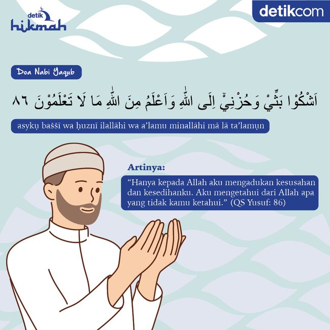 Jakarta - Setiap manusia pasti pernah mengalami kesusahan dalam hidupnya, tapi bukan berarti langsung pasrah. Ada doa yang bisa dipanjatkan untuk memohon kekuatan dan kesabaran, sebagaimana yang dilakukan Nabi Yaqub serta dicontohkan Nabi Muhammad SAW.