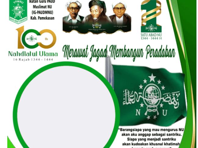 Siapapun bisa ikut meramaikan momen harlah 1 abad NU. Salah satu caranya dengan mengaplikasikan bingkai Twibbon bertema Harlah 1 Abad NU. Berikut rekomendasi Twibbonnya.