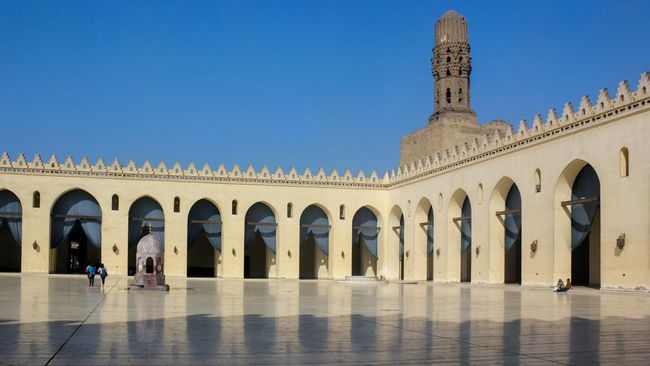 Masjid bersejarah di Mesir, Masjid Al-Hakim bi Amrillah, resmi dibuka kembali untuk pengunjung setelah selesai direnovasi pada Senin (27/02).