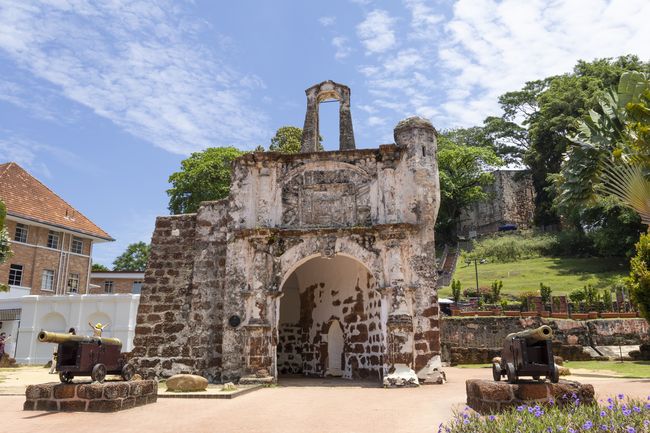 Portugis mendirikan benteng A'Famossa di atas bukit sebelah Sungai Malaka sehingga ia dapat mengamati apa yang terjadi di sekitarnya. Terlebih letaknya membuat benteng ini tidak mudah untuk direbut musuh karena benteng A'Famossa langsung menghadap ke laut. Benteng ini bertembok tinggi dan dijadikan sebagai pusat pemerintahan yang dilengkapi garnisun tentara.