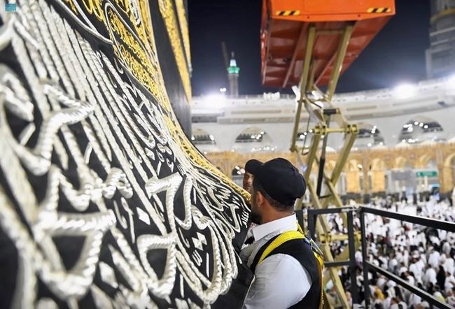Melansir Arab News, dalam persiapan untuk mencuci Kakbah pada hari ini, Presidensi Umum Arab Saudi untuk Urusan Masjidil Haram dan Masjid Nabawi telah menaikkan bagian bawah kiswah.