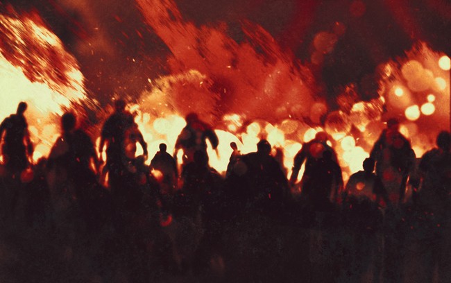 Tak jauh dari sana, ada meja-meja yang lain. Di atasnya terhidang daging-daging busuk, namun orang-orang malah menyantapnya di meja-meja makan itu.
