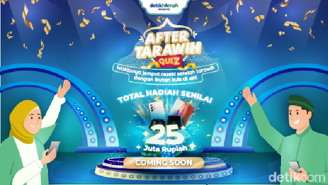Khusus After Tarawih Quiz, detikcom menyediakan total hadiah sebesar Rp 25 juta. Yuk ah ikutan, jangan sampai terlewat.