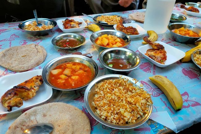 Jamuan Maidaturrahman yang dihidangkan cukup lengkap. Salah satu menu wajib yang dihadirkan adalah Isy, sebagai makanan pokok orang Mesir. Isy merupakan roti bundar terbuat dari gandum, biasanya lebih nikmat disantap dengan sayur daging atau hati ayam. Tak hanya itu, takjil berbuka seperti kurma, syai (teh), hingga nasi khas Arab juga turut dihidangkan dalam satu porsi Maidaturrahman.