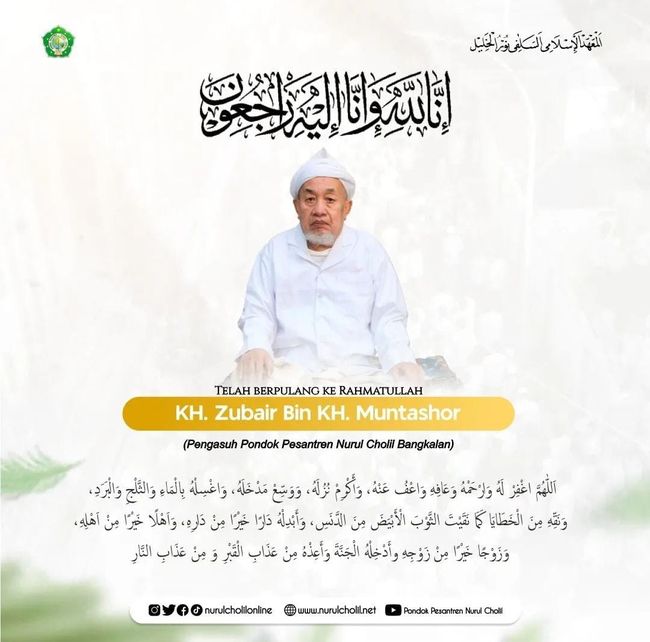 Kabar wafatnya Kiai Zubair disampaikan pihak Ponpes Nurul Cholil Bangkalan melalui media sosialnya siang ini.