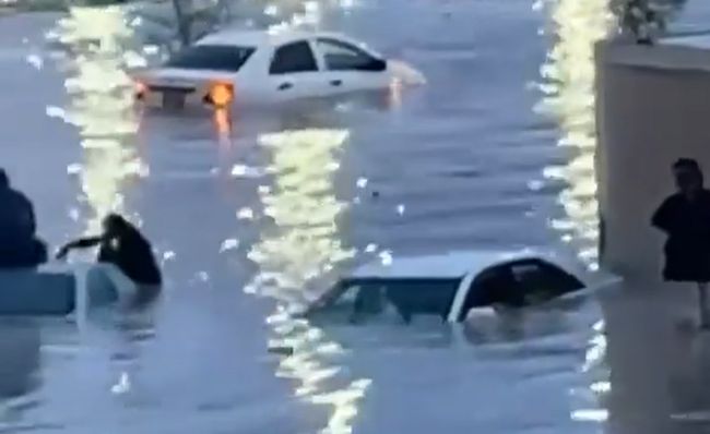 Rekaman banjir bandang di wilayah tersebut banyak beredar di media sosial. Media lokal MSDAR News mengunggah video yang memperlihatkan banjir parah di Kegubernuran Al Eis. Mobil-mobil tampak terendam air.