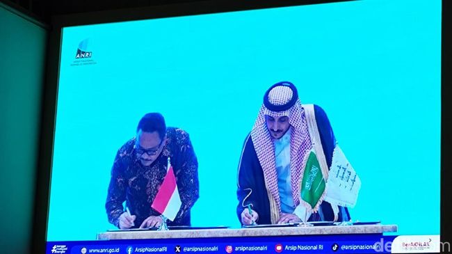 Arsip Nasional RI (ANRI) menandatangani Nota Kesepahaman (MoU) dengan Arsip Nasional Kerajaan Arab Saudi (NCAR). Penandatanganan dilakukan di Gedung ANRI, Jakarta Selatan pada Senin (23/12/2024).