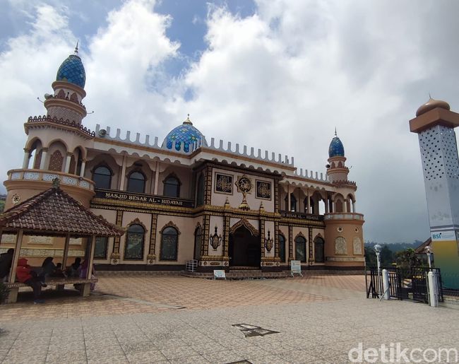 Terdiri dari dua lantai di atas bukit dengan latar Gunung Agung membuat masjid ini tampak menjulang dari kejauhan. Juga eksotis dengan tiga kubahnya yang mirip telur raksasa berwarna biru. "Dibangun di tanah wakaf Papuk (Bapak) Awaludin dan Bapak Nurdjinah," ungkap Ketua Yayasan Al Hidayah, Khairil Anwar kepada detikHikmah, Kamis (6/2/2025).