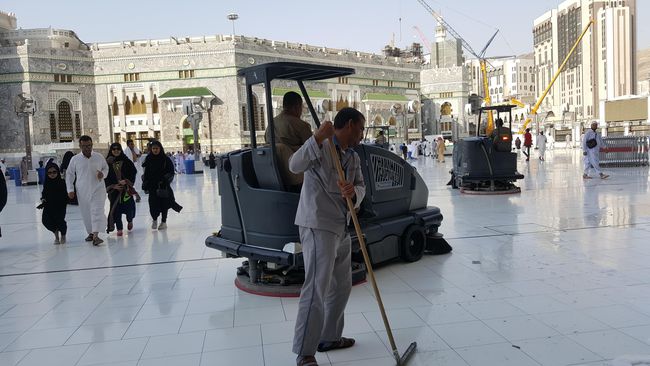 Masjidil Haram memiliki ribuan pekerja yang bertugas membersihkan seluruh tempat ibadah demi memastikan kenyamanan jemaah. Untuk menjamu para tamu Allah di seluruh dunia, Arab Saudi selalu berupaya memberikan layanan terbaik. Salah satunya adalah kebersihan lingkungan di Dua Masjid Suci.
