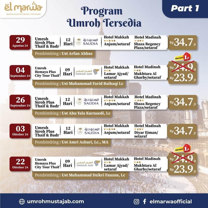 El Marwa Travel Pilihan Terbaik Perjalanan Ibadah Umroh Anda BAGIKAN URL telah disalin Foto: adsmart Foto: adsmart