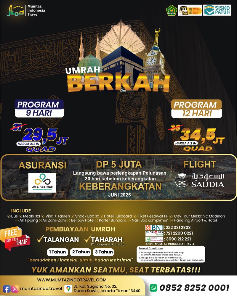 Spesial Juni 2025: Umroh Berkah Bersama Mumtaz Indonesia Travel BAGIKAN URL telah disalin Mumtaz Indonesia Travel