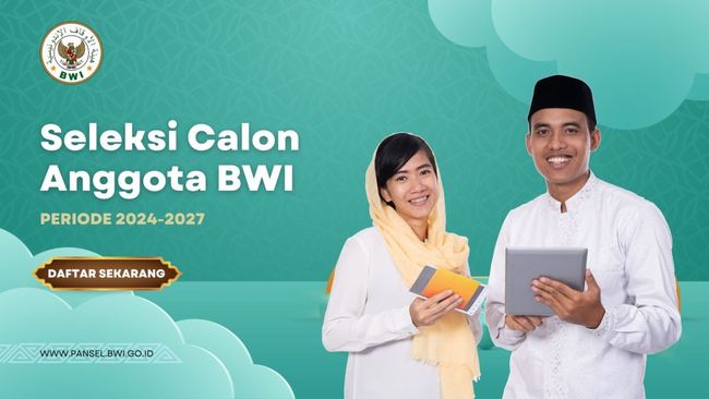 Seleksi calon anggota Badan Wakaf Indonesia (BWI) periode 2024-2027 telah dibuka. Putra-putri bangsa dapat melakukan pendaftaran secara online.