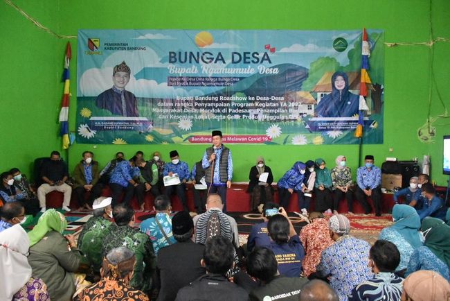 Bupati Bandung Dadang Supriatna melaksanakan program Bunga Desa (Bupati Ngamumule Desa) atau Saba Desa, Kamis (17/2). Di kesempatan ini, Dadang bersama jajaran perangkat daerah menemui masyarakat di Desa Cipanjalu Kecamatan Cilengkrang, Kabupaten Bandung.