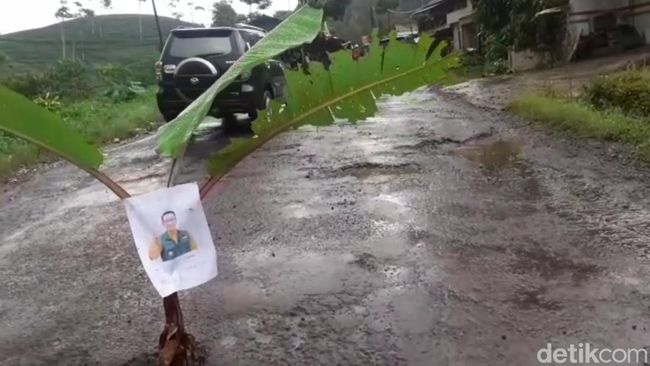 Mahasiswa dan warga tanam puluhan pohon pisang di sepanjang jalan provinsi di delapan kecamatan Kabupaten Cianjur. Aksi itu dilakukan lantaran kesal jalan provinsi dari Cianjur menuju selatan rusak parah dan tak kunjung ada perbaikan.