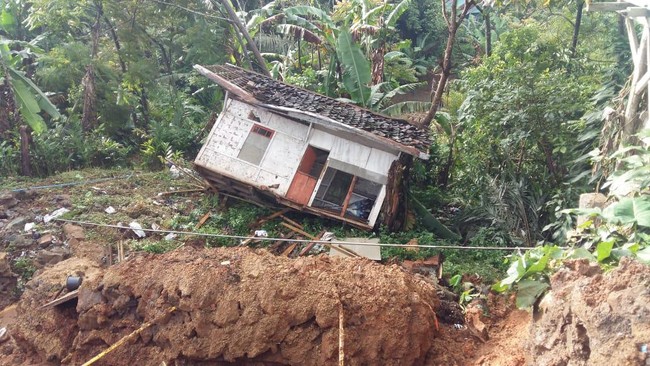 "Kejadiannya tadi dini hari. Tebing setinggi 10 meter longsor usai terjadi hujan deras. Panjang tebing yang longsoran mencapai 30 meter," ujar Kades Cidadap Budiman.