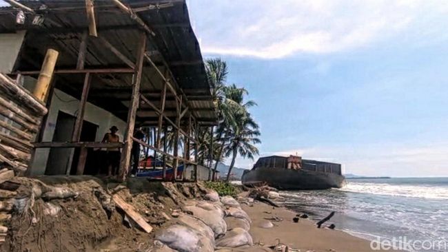 Informasi yang diperoleh detikJabar, posisi kapal tongkang itu sudah berada di lokasi tersebut selama 11 hari. Pantauan di lokasi, akibat keberadaan tongkang yang menahan hempasan ombak dari laut, abrasi tidak terhindarkan. Bahkan satu rumah warga rusak akibat tergerus ombak yang terhempas dari tongkang.