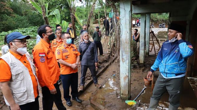 Wakil Bupati Garut Helmi Budiman mengunjungi lokasi banjir bandang di Kecamatan Cisurupan. Dalam kunjungannya, Helmi menyalurkan bantuan dan mengecek kerusakan rumah warga di sana.