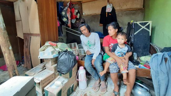 "Kalau hujannya cukup besar, ya lantai rumah yang berupa tanah ini, jadi becek dan licin," kata Iman, sambil menunjuk lantai rumahnya.