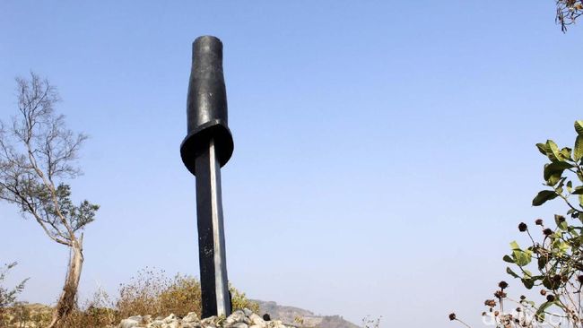 DetikJabar pun pernah melihat lebih dekat lokasi belati raksasa itu. Sebenarnya, belati tersebut tak benar-benar tertancap, tetapi berdiri pada semen coran yang menopang fondasinya. Lebih tepat jika dikatakan monumen yang menyerupai belati.