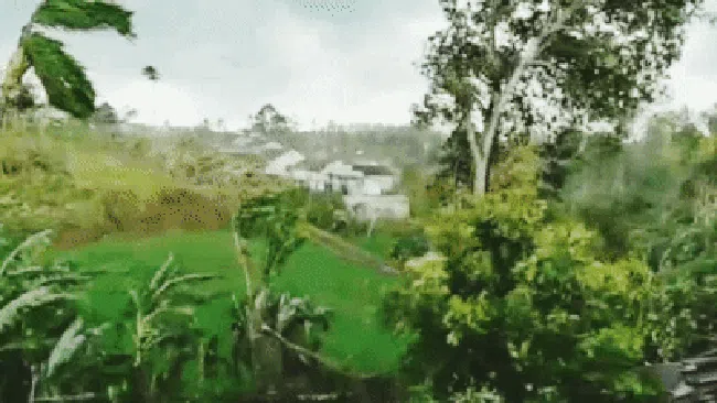 Uyeh bercerita saat itu angin tidak hanya menerbangkan genting, tapi juga mematahkan rangka atap rumah warga. "Saya kaget, tapi berusaha sadar saja, lalu saya lari mencari perlindungan," tutur Uyeh.
