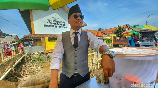 "Awalnya menggunakan pakaian rapi adalah dulu pas pertama PSBB sekitar tahun 2020. Pertamanya saya sepulang dari undangan, terus waktu mepet harus jualan. Masih menggunakan jas hitam, saya langsung jualan," ujar Hendra saat ditemui detikJabar, Kamis (10/3/2022).