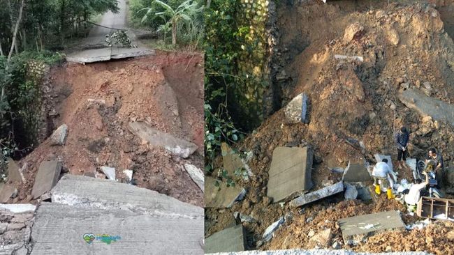 Salah seorang tokoh masyarakat Desa Sukamukti Angki Sopandi menyebut, ambruknya jembatan tersebut diduga lantaran kondisi tanah yang labil dan curah hujan tinggi beberapa hari lalu.