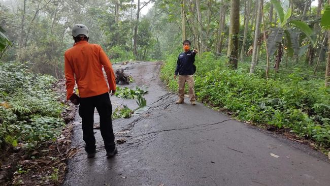 Rully menyebutkan, panjang retakannya sendiri sekitar 500 meter di area lokasi kejadian. Selain menyebabkan amblesnya jalan, retakan itu juga mengakibatkan kerusakan di area perkebunan warga.