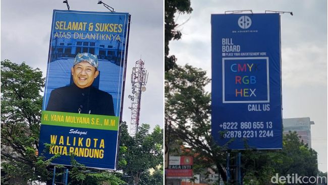 Baliho ucapan pelantikan Plt Wali Kota Bandung Yana Mulyana menjadi Wali Kota Bandung definitif mendadak hilang.
