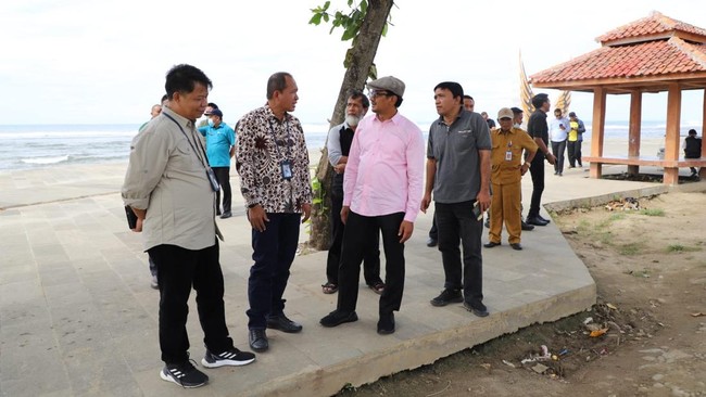 Wakil Bupati (Wabup) Garut Helmi Budiman meninjau kondisi terkini Pantai Sayang Heulang di Kecamatan Pameungpeuk, Kabupaten Garut. Helmi memastikan kondisi Pantai Sayang Heulang menjelang libur panjang Hari Raya Idul Fitri di bulan Mei mendatang.