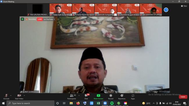 Apresiasi disampaikan olehnya saat membuka Sosialisasi Pengendalian Gratifikasi pada Pemerintah Daerah Kabupaten Sumedang, Jumat (25/3), melalui zoom meeting.