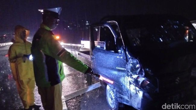 "Pengemudi hilang kendali karena faktor cuaca yang sedang hujan, lalu menabrak barrier beton pembatas median tengah jalan sebelah kanan, kemudian banting stir ke kiri sehingga posisi akhir kendaraan ada di bahu jalan jalur A," ungkap Ervan.