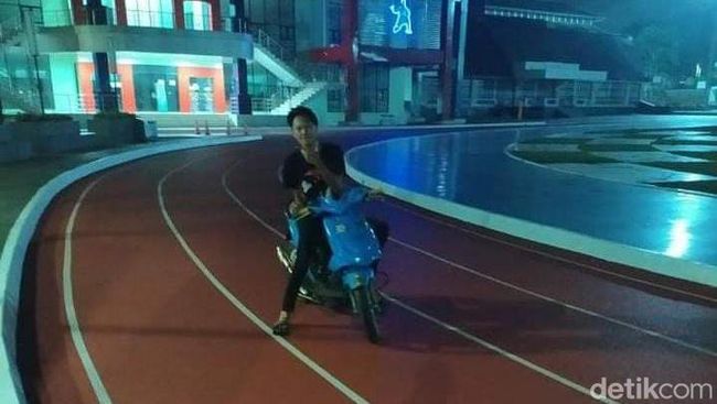 Sebuah foto remaja menggunakan motor berada di lintasan jogging track Lapang Merdeka Sukabumi tersebar di media perpesanan. Padahal selama ini, area tersebut dilarang untuk digunakan oleh pesepeda dan sepatu roda, apalagi oleh pengguna motor.