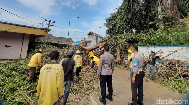 "Kejadian tumbangnya pohon besar ini sekitar jam 12.30 siang," ungkap Tatang kepada detikJabar, Senin (28/3/2022).