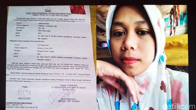 Ida Rismayanti (29), ibu dua anak asal Kampung Kaum Kidul, Kecamatan Cibadak, Kabupaten Sukabumi, dilaporkan hilang sejak 24 Maret 2022. Sang suami, Andri Suhendi (34), sudah berusaha mencarinya, namun perempuan yang dinikahihnya selama 11 tahun belum diketahui keberadaannya.